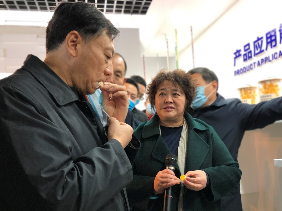 在公司產(chǎn)品展臺,張維寧副主任詳細(xì)了解了公司在產(chǎn)品應(yīng)用解決方案、天然提取物活性成分研發(fā)和天然保健食品開發(fā)情況,并饒有興趣地品嘗了公司開發(fā)的糖果、天然飲品,稱贊公司的產(chǎn)品“不但色味俱佳,而且有益健康,真正抓住了大眾的消費(fèi)需求,一定會越來越受到市場的歡迎”。