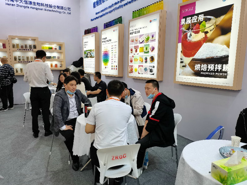 2021年4月27-30日,河南中大恒源生物科技股份有限公司參加在上海新國際博覽中心舉辦的第23屆中國國際焙烤展覽會。公司以“擁有完善的供應鏈體系,產品多色系覆蓋,植物提取物應用專家,健康營養品開發伙伴”為主題,展出了健康食品原料、健康保健產品、天然色素及賦色食品、烘培產品、糖果/巧克力產品、飲料類產品及應用解決方案。展廳內人頭攢動,客流不斷,或饒有興趣的品評產品,或深入洽談合作事宜。